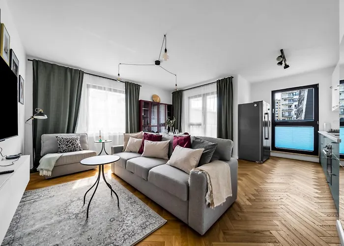 The 69 m² Skierniewicka Apt - Parking, Workspace, Balcony - By Rentujemy Warsaw offers proximity to such tourist attractions as Teatr Dramatyczny, situated around 5 minutes' walk away.